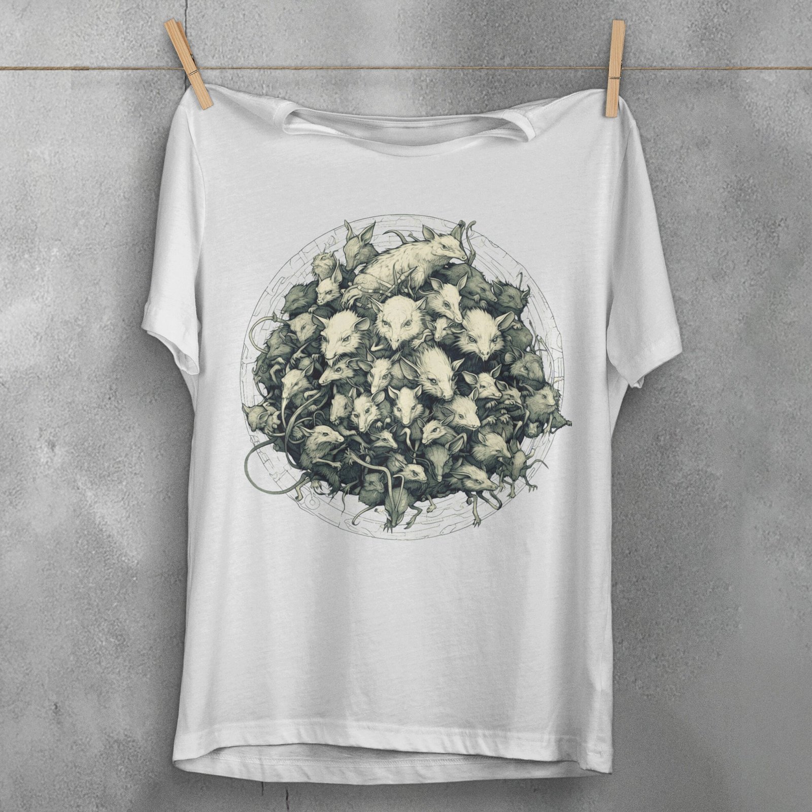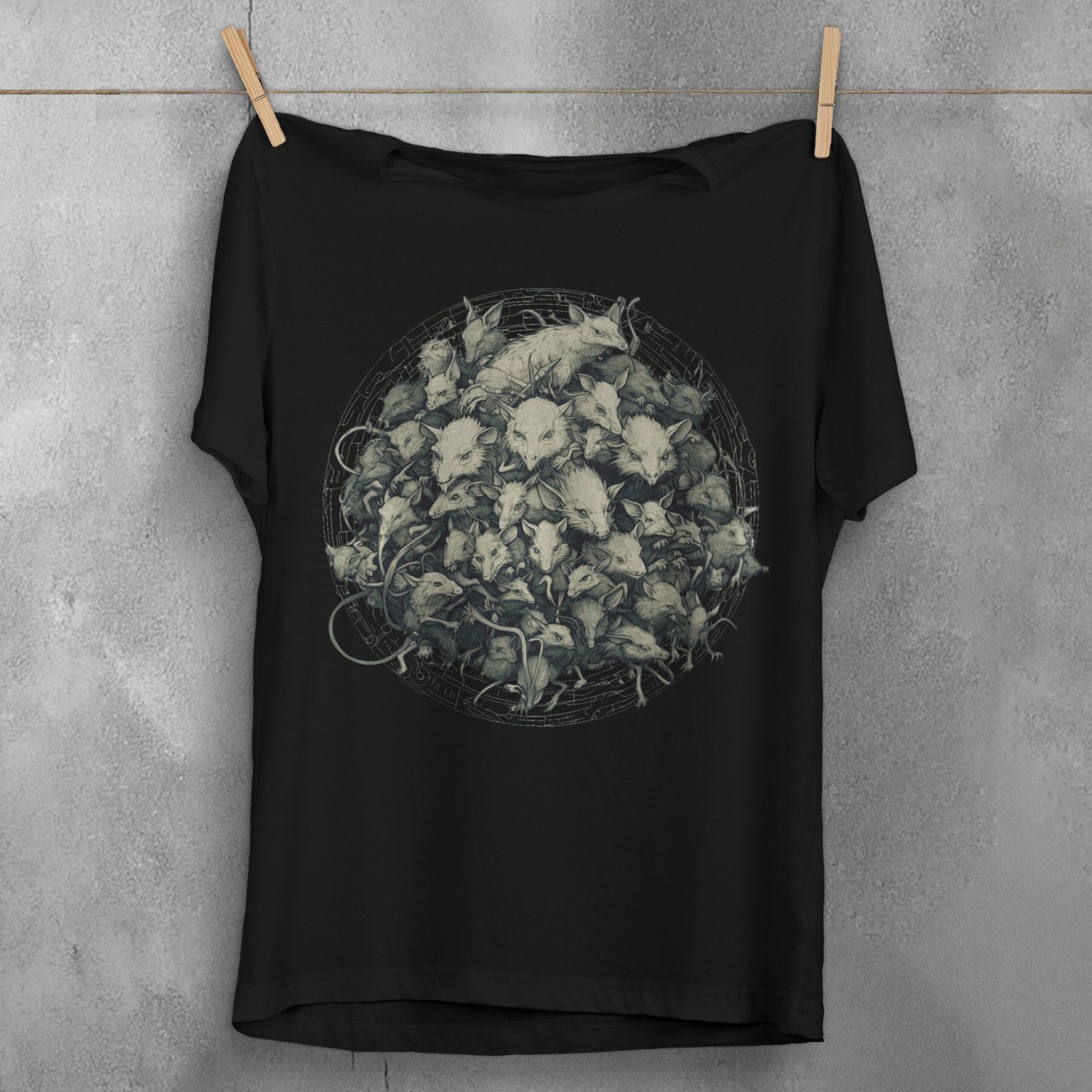 Cloaked in the shadows of the night, this intricate artwork captures the enigmatic essence of a commingled group of rodents. Each creature, intertwined with its companions, forms a mesmerizing, chaotic whole that speaks of unity in darkness. The monochromatic palette adds to the haunting allure, evoking feelings of both mystery and intrigue. Those who walk the path of the gothic, who find beauty in the macabre, will feel a deep connection to this symphony of shadows. The symbolism is rich, suggesting themes of togetherness amidst chaos, survival, and the silent strength found in numbers. This piece resonates with the dark, poetic souls who see the world through a veil of nocturnal elegance.