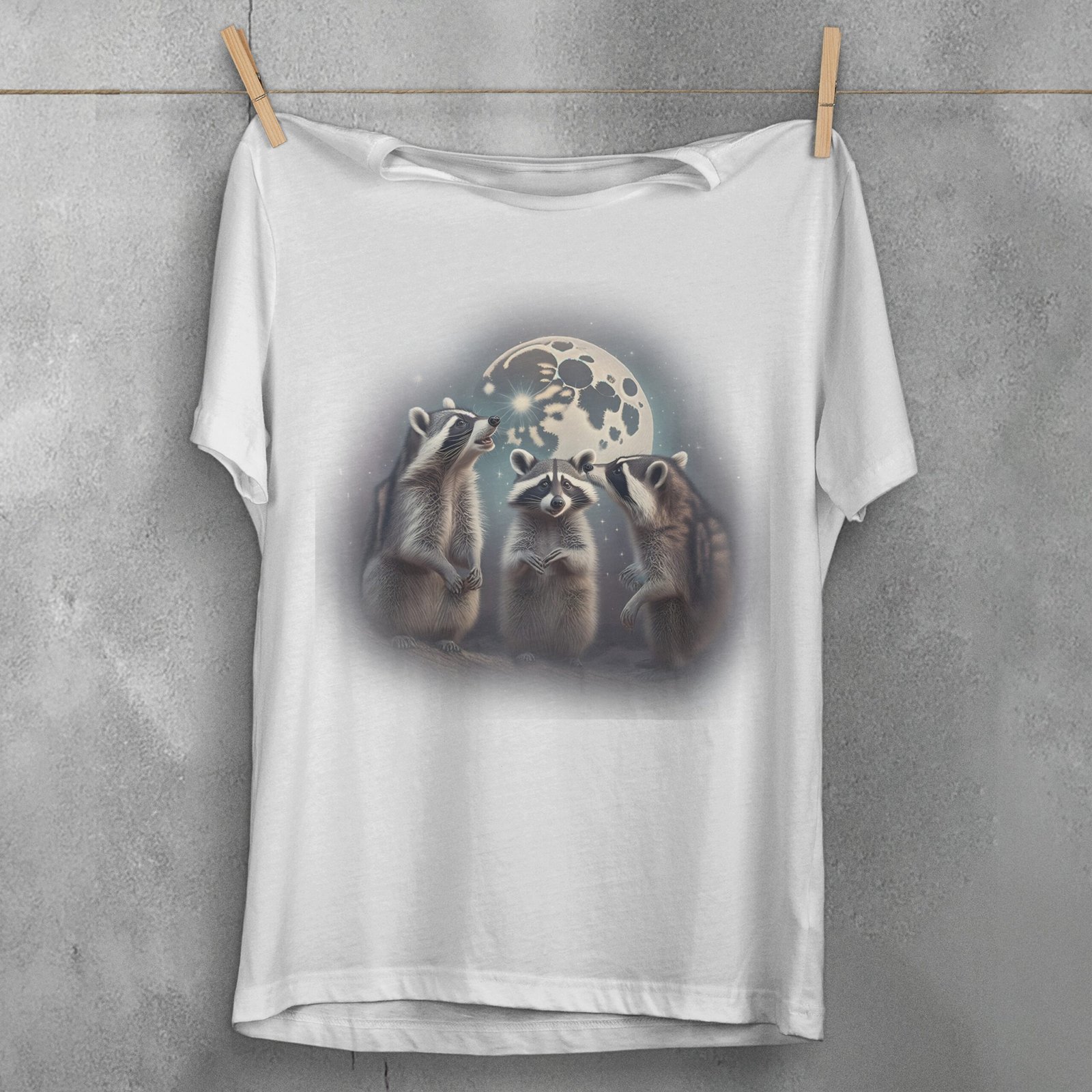Evoking a lunar serenade, this image captures a moment of whimsy under the moonlit sky. Three raccoons stand in camaraderie. Their expressions convey a sense of nocturnal mystery. They embody a connection to nature’s hidden hours. The starlight casts an ethereal glow. It speaks to those who find magic in the mundane. This image resonates with the soul of night wanderers and dreamers.