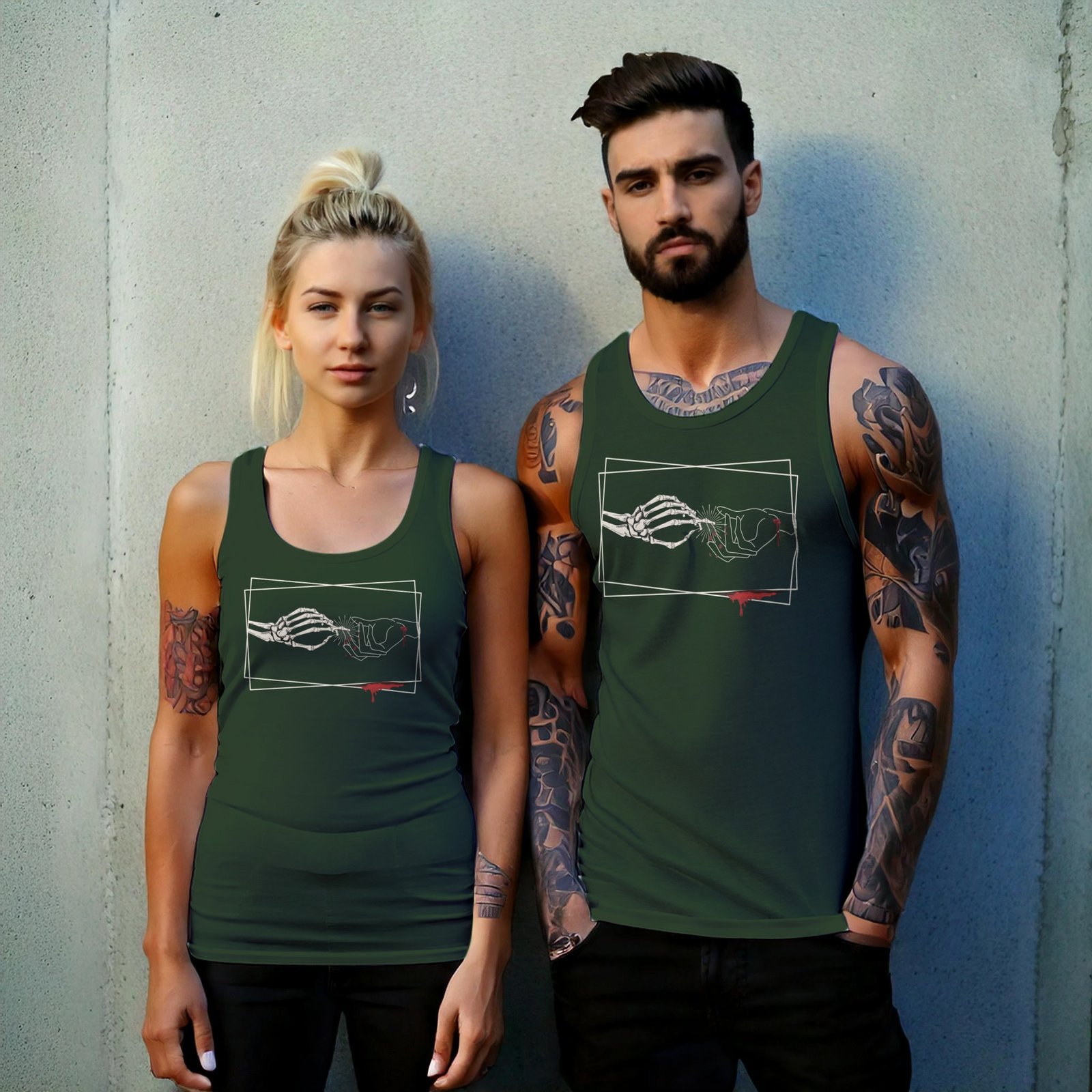 Explore TheOgham’s gothic art. This poignant piece captures a meeting of mortal and eternal, an embrace across the veil. Delicate blood accents the stark white lines. The gothic design invokes themes of love, loss, and transformation. Perfect for those drawn to witchy aesthetics or mystical statements. The design speaks to an appreciation for the dark beauty found in gothic symbolism. Embrace the shadows with this unique piece for your collection.