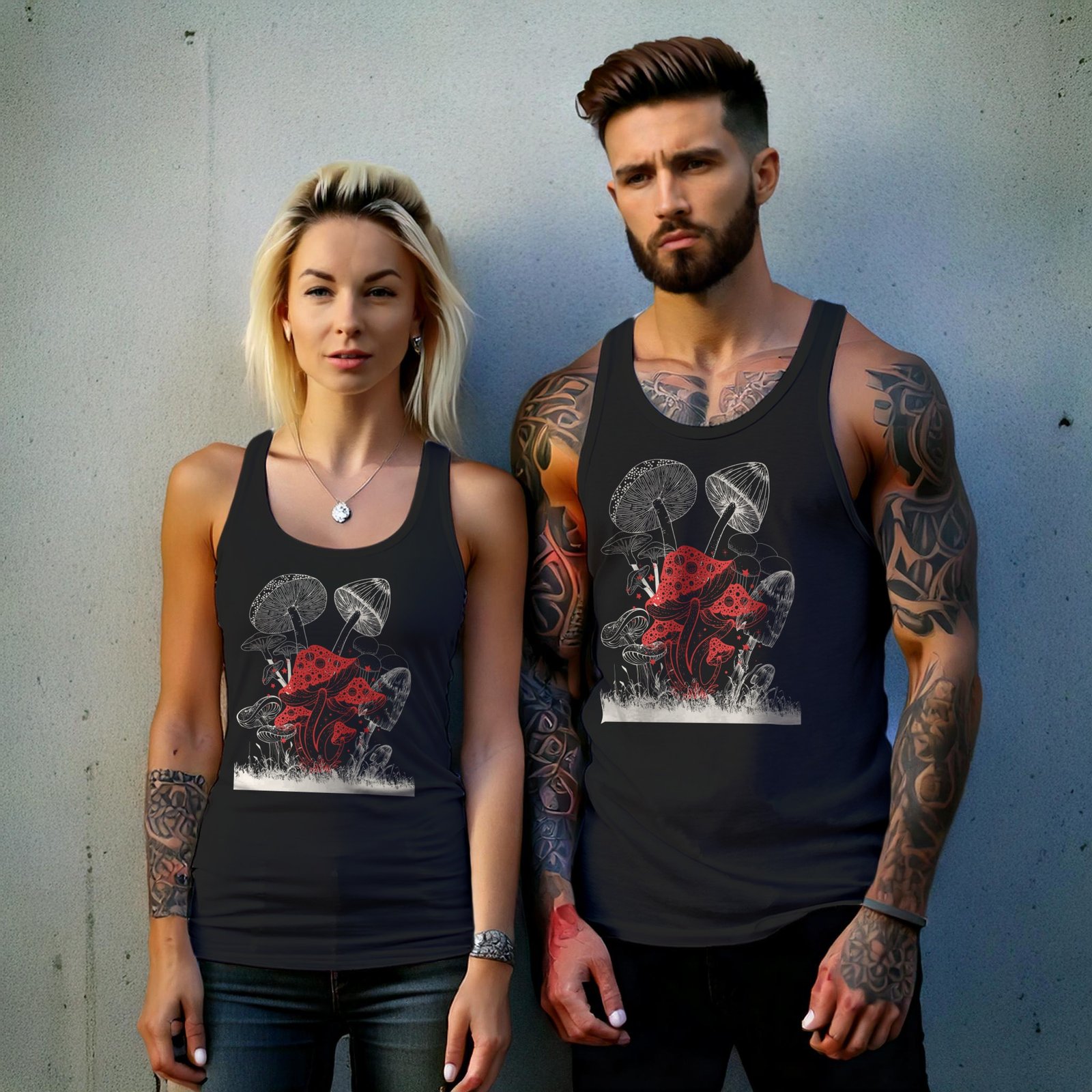 Discover the magic of the forest with TheOgham’s gothic mushroom artwork. Red and white mushrooms cluster in a bewitching scene. Stars twinkle, illuminating the enchanted woodland floor. This piece embodies the mysteries of nature and esoteric knowledge. Connect with your inner witch and embrace the power of fungi. This artwork resonates with those drawn to the occult. It whispers of hidden realms and mystical transformation. The detailed illustration style enhances the piece.