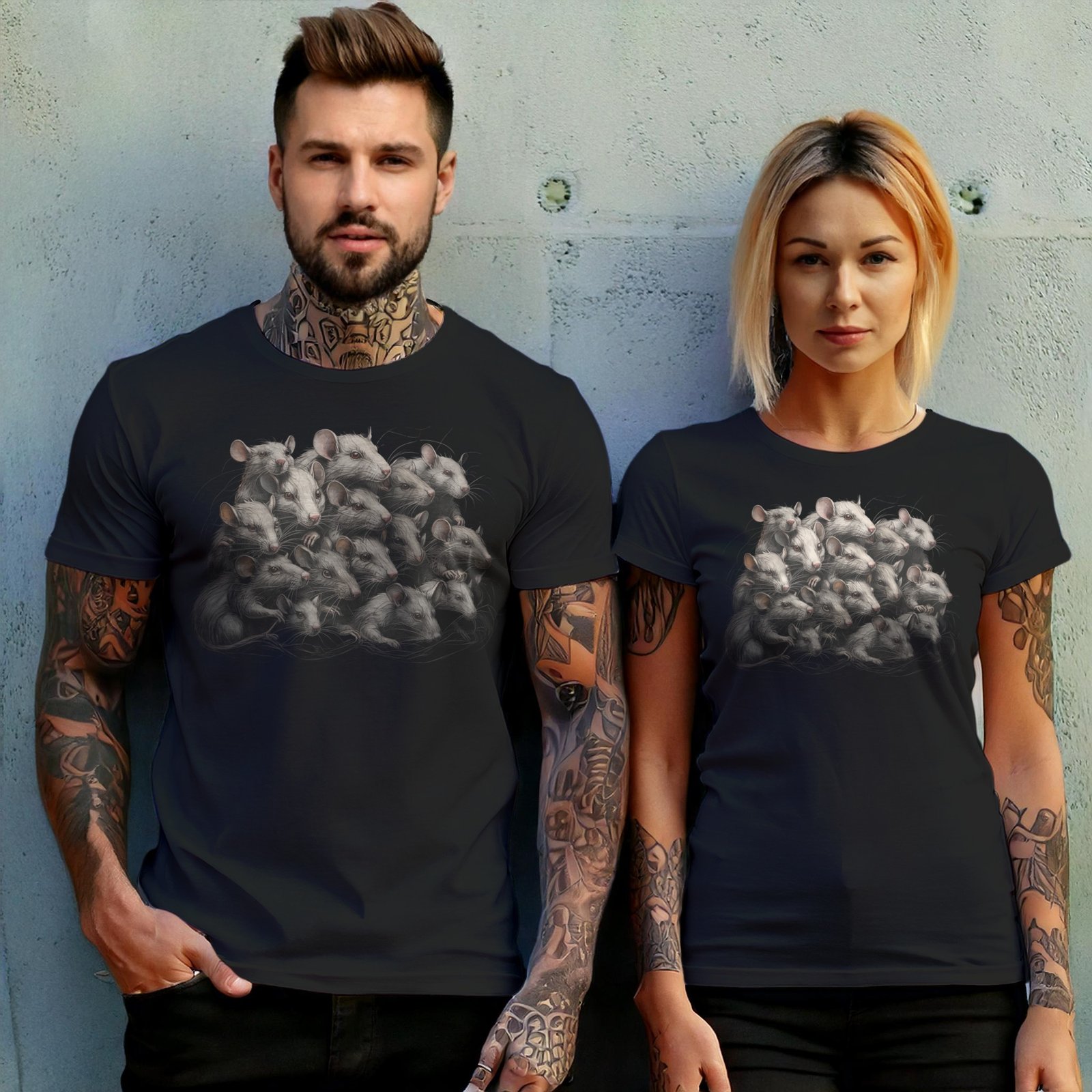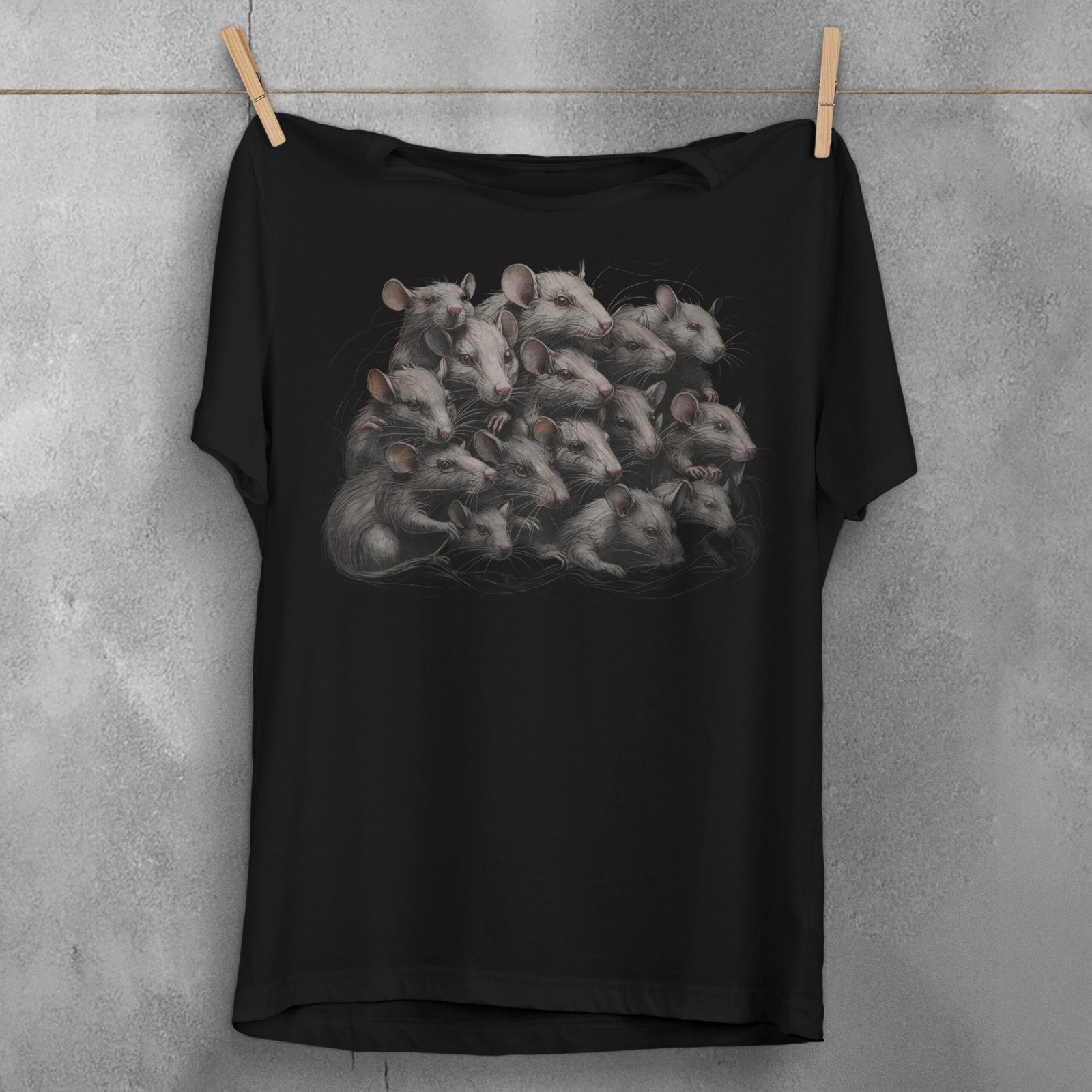 Embrace the mystique with a hauntingly captivating motif that captures the essence of a gothic narrative. This artwork features a huddled gathering of rats, portrayed with fine, intricate detailing that evokes an atmosphere of eerie fascination and macabre beauty. Each rat varies subtly, drawing the observer into a deeper contemplation of unity and survival within the shadows. The detailed illustration captures a raw and natural darkness, perfect for those who revel in the mysterious and the witchy. This design speaks to the souls who find beauty in the overlooked and the enigmatic, who feel at home in the company of the nocturnal and the obscure. It’s a statement of solidarity and strength in the face of the unknown, making it an ideal piece for those who stride confidently through life’s hidden corners.