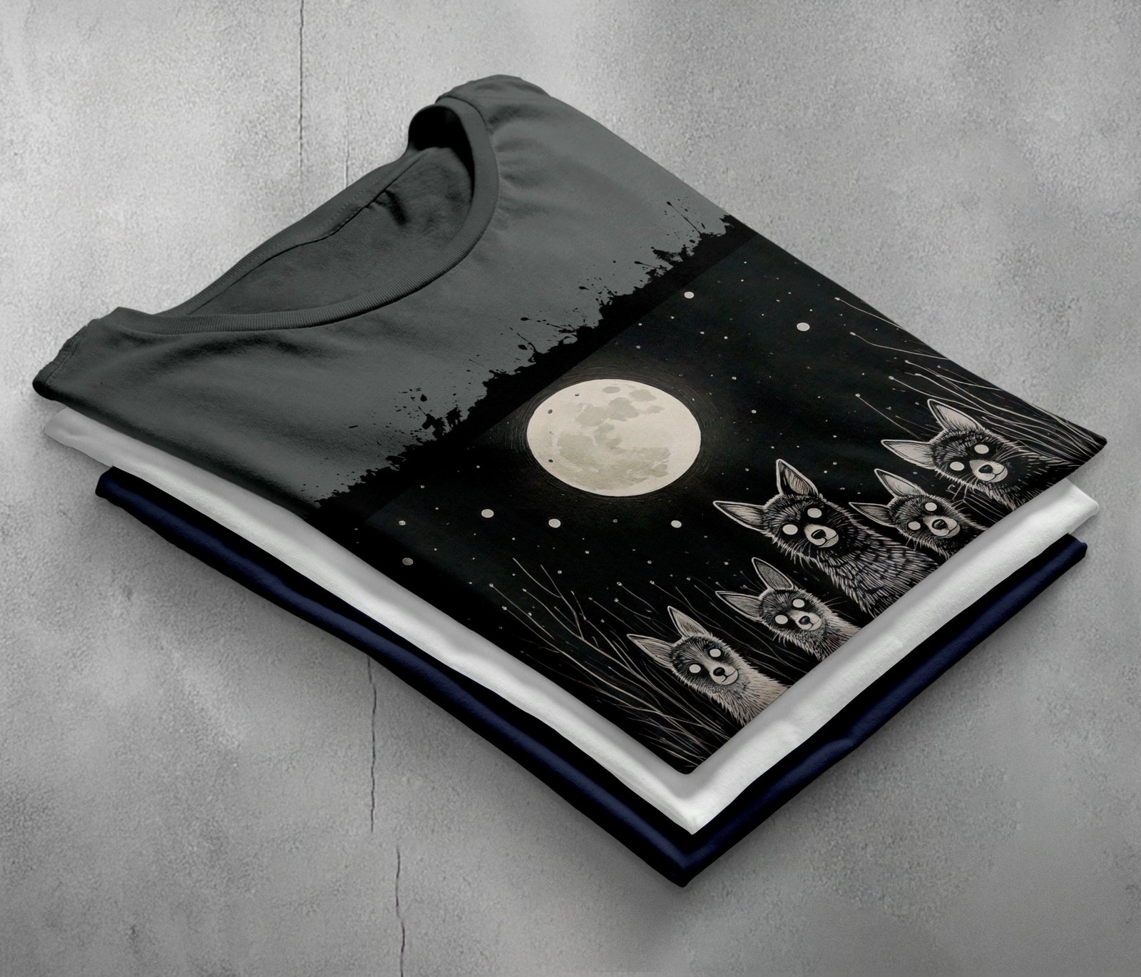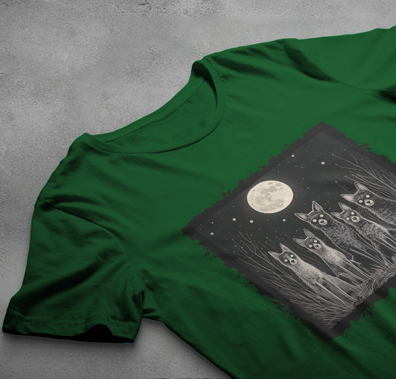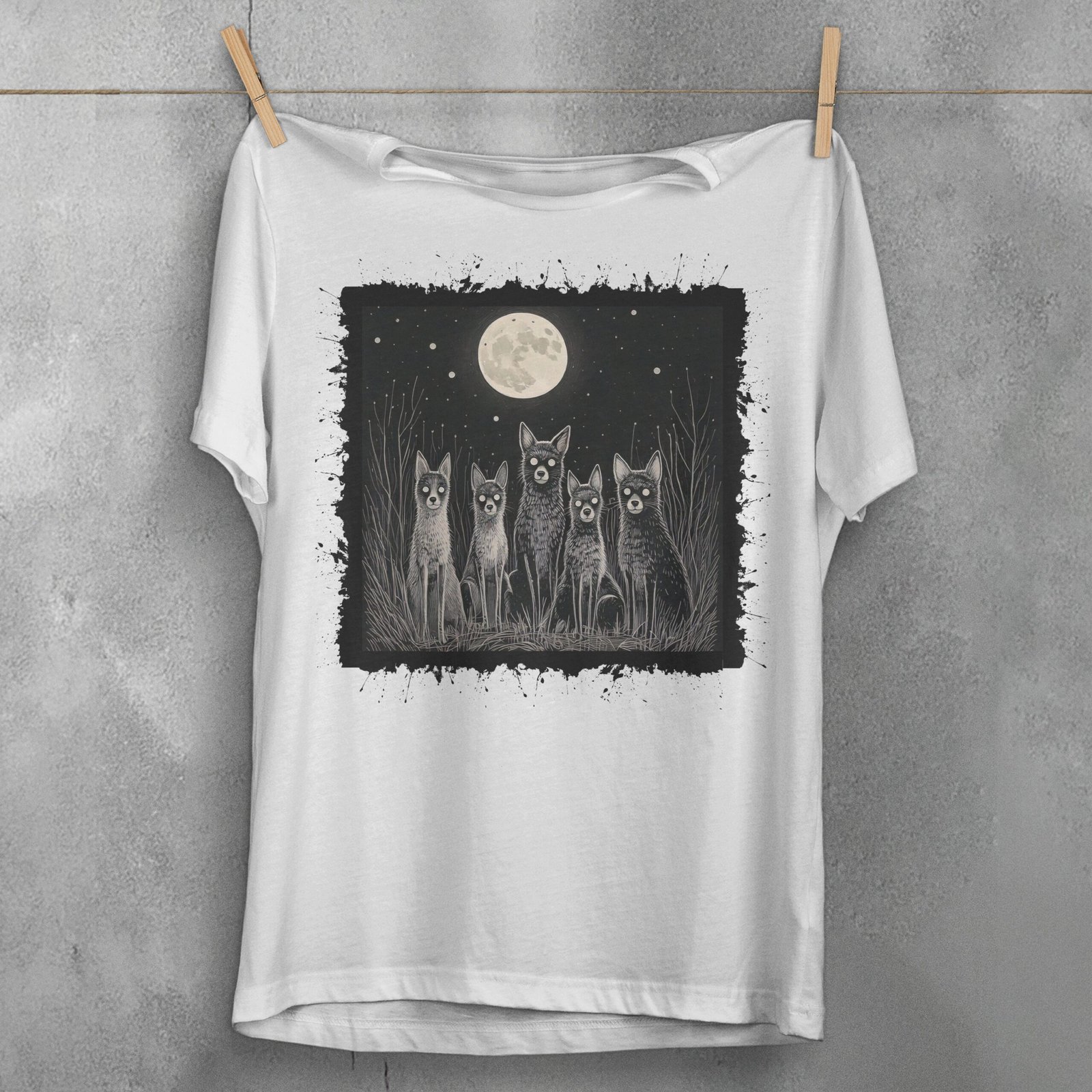 Moonlit night spooky wolves pack creepy cute animals t-shirt