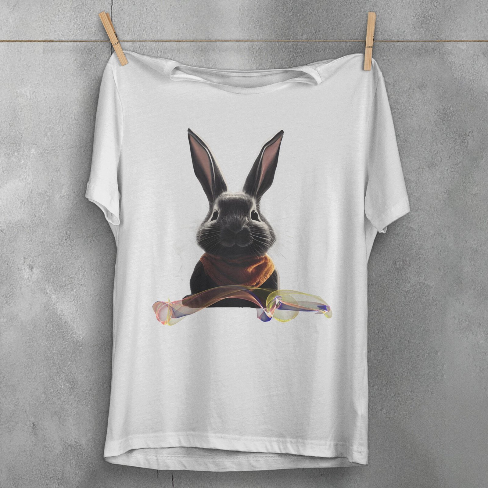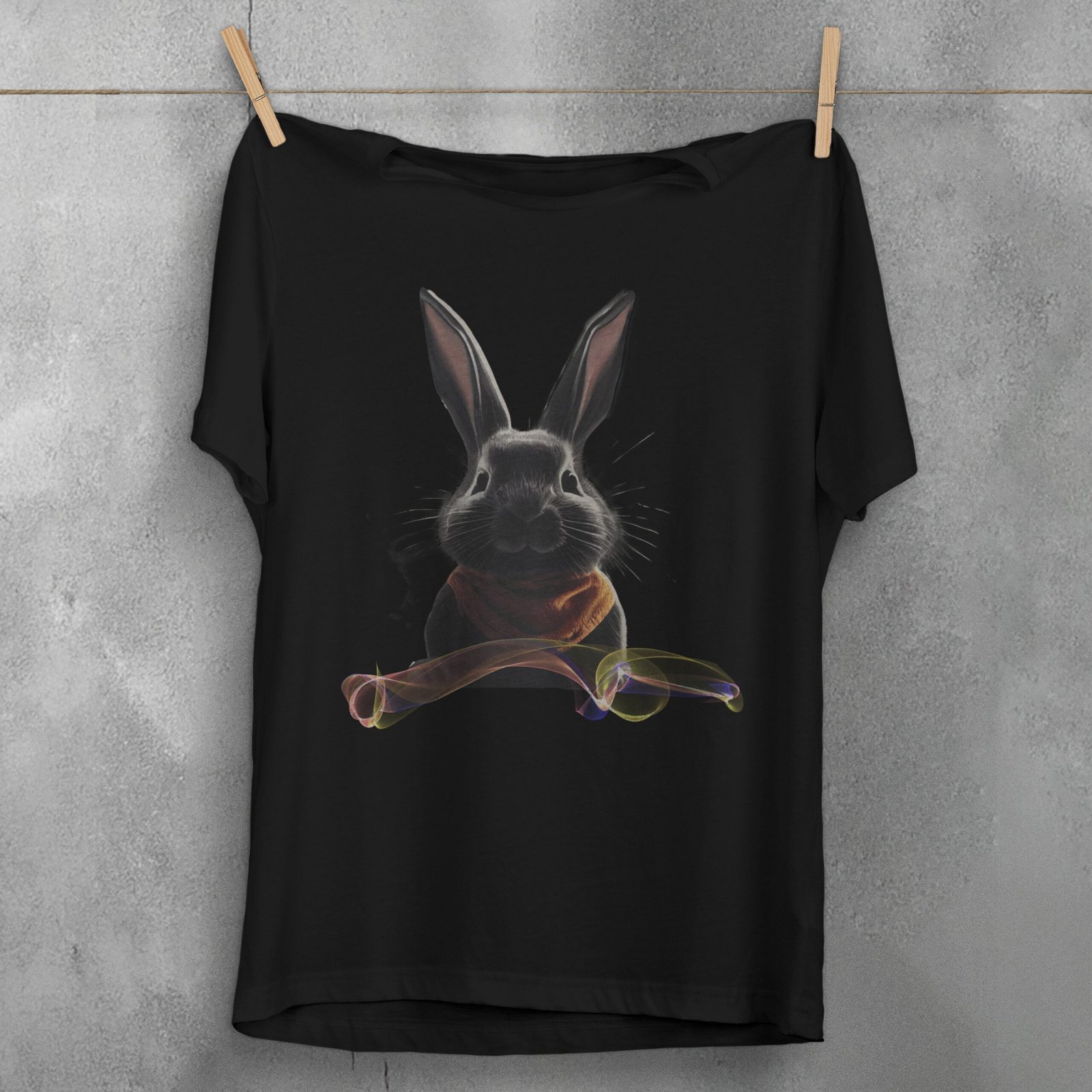 TheOgham presents a curious bunny in mystical attire. It evokes a sense of quiet wisdom. The black rabbit has long ears and kind eyes. He is the keeper of secrets. The scarf around its neck adds warmth to the enigmatic aura. Faint whispers of rainbow hues float just beneath him. This piece appeals to those who find magic in nature’s whispers. It resonates with those drawn to the path less travelled.