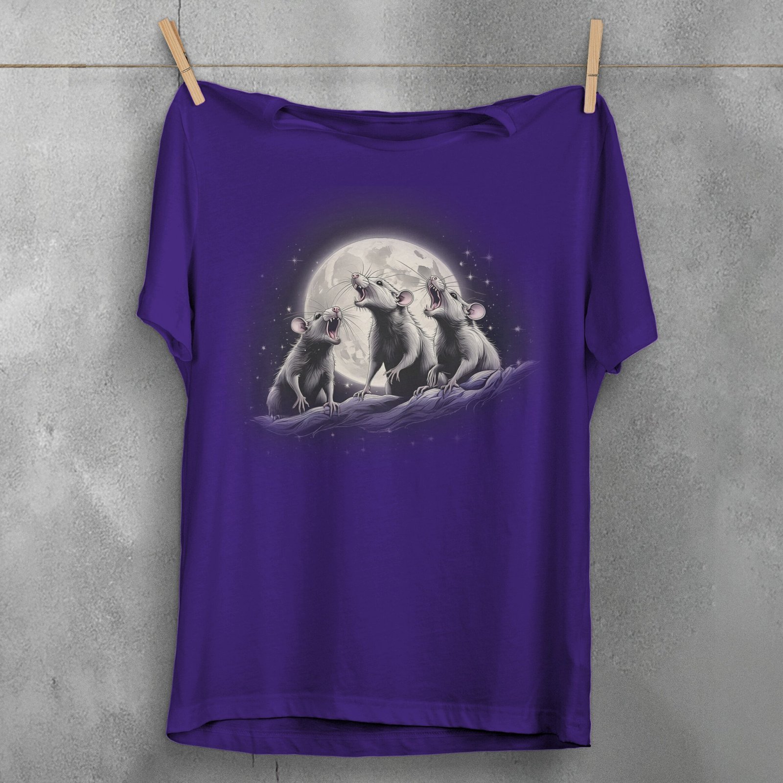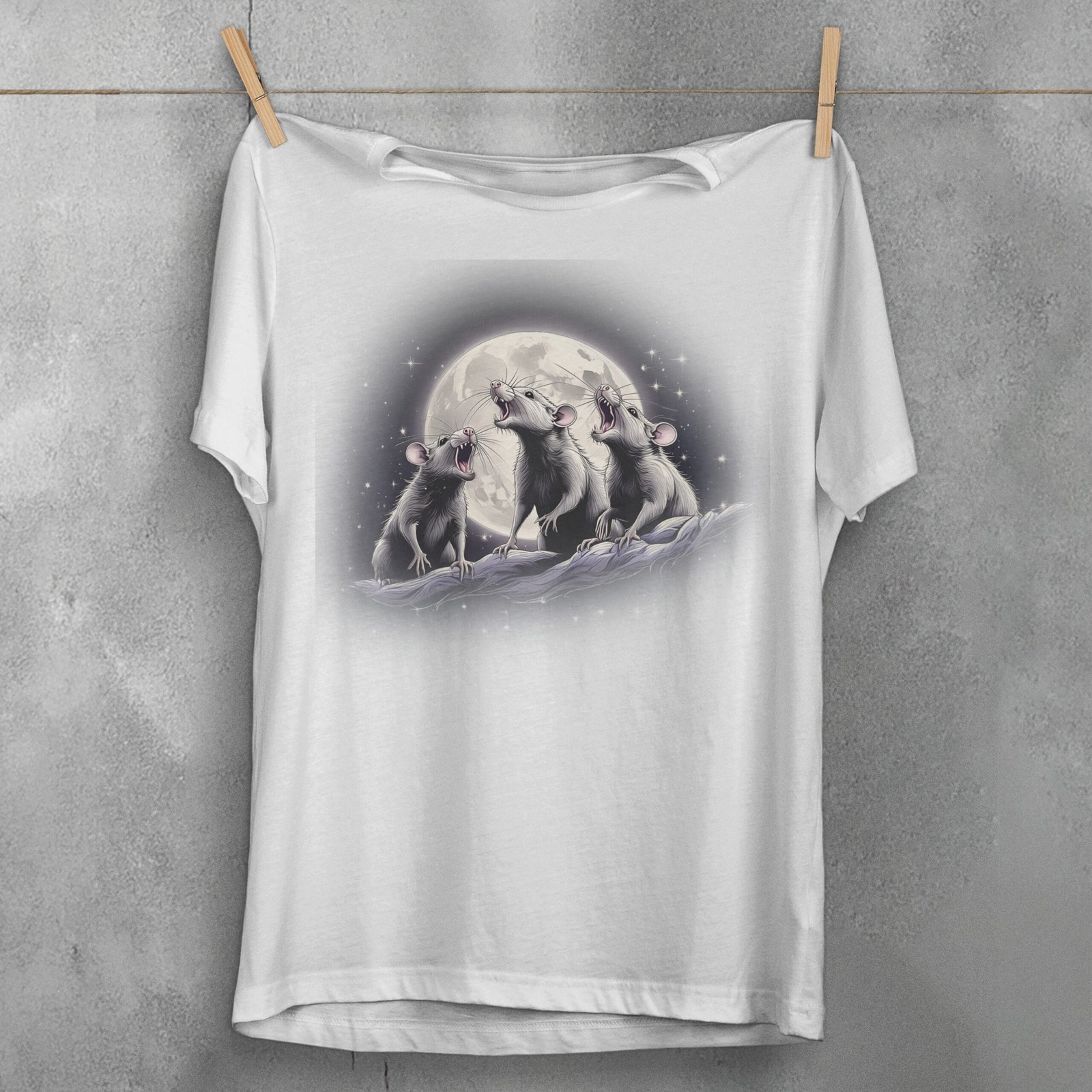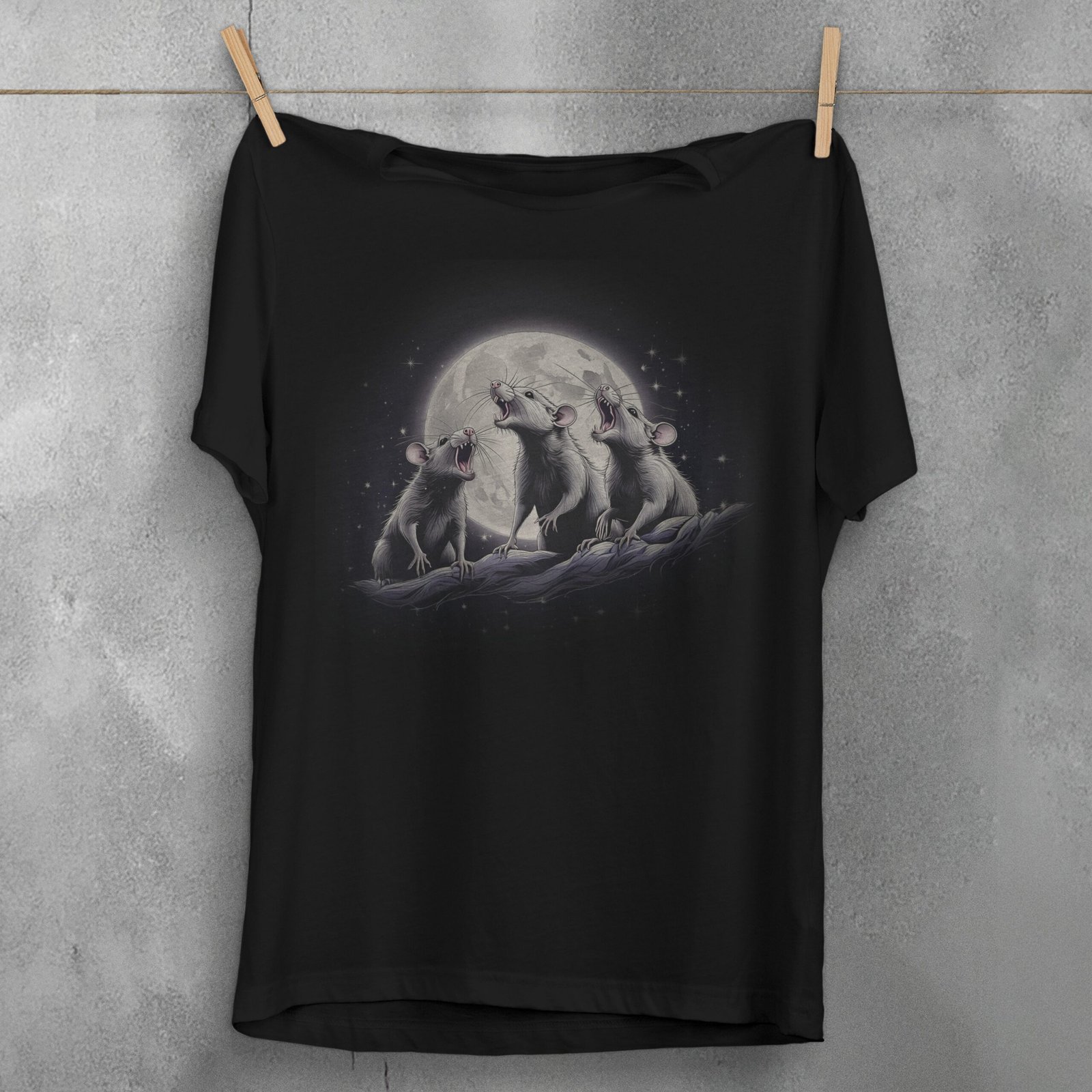 In the pale glow of a haunting full moon, three mystic rats perch upon a spectral branch, their voices rising in an eerie, harmonious call. This nocturnal scene is cloaked in shadows, resonating with the whispers of the night, inviting those who share a kinship with the dark and the enigmatic. The artwork conjures a sense of ancient rituals and lunar magic, perfect for those who walk the twilight paths of gothic allure. The ethereal beauty of the moon and the haunting presence of the rats create a balance between mystery and intrigue. This design speaks to the soul of a night dweller, a seeker of secrets, and an appreciator of the unseen. With each glance, the imagery reveals layers of gothic fantasy, making it a timeless piece for those who revel in the shadows.