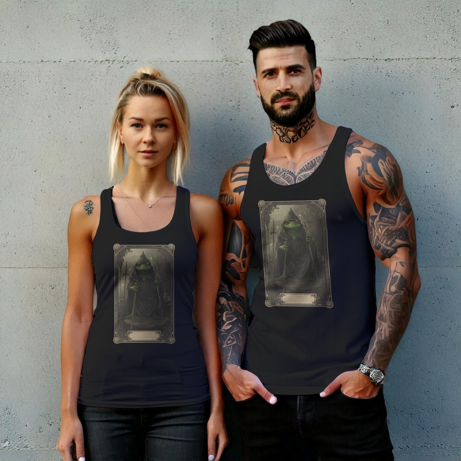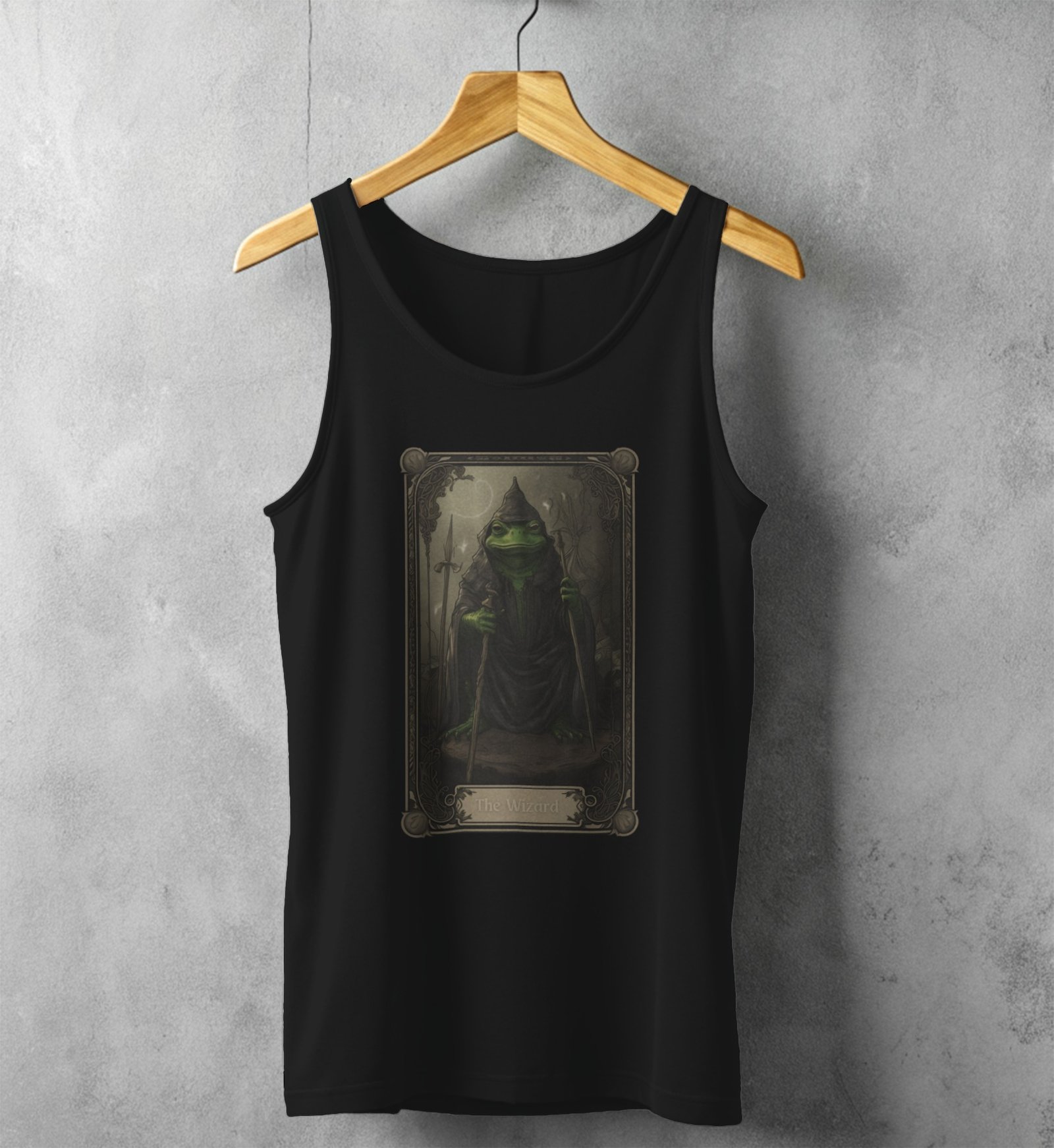 Embrace the enigmatic charm of TheOgham’s ‘The Wizard’ Tank Top. This artwork unveils a gothic, witchy aesthetic, depicting a frog wizard in contemplative repose. He evokes ancient wisdom and mystic potential, shrouded in shadow. The detailed rendering lends an air of timeless mystery, perfect for those drawn to esoteric symbolism. This piece resonates with seekers of hidden knowledge and admirers of darkly whimsical art. It embodies the power of inner vision and the transformative journey. A conversation starter for the spiritually inclined, a subtle statement of arcane interests.