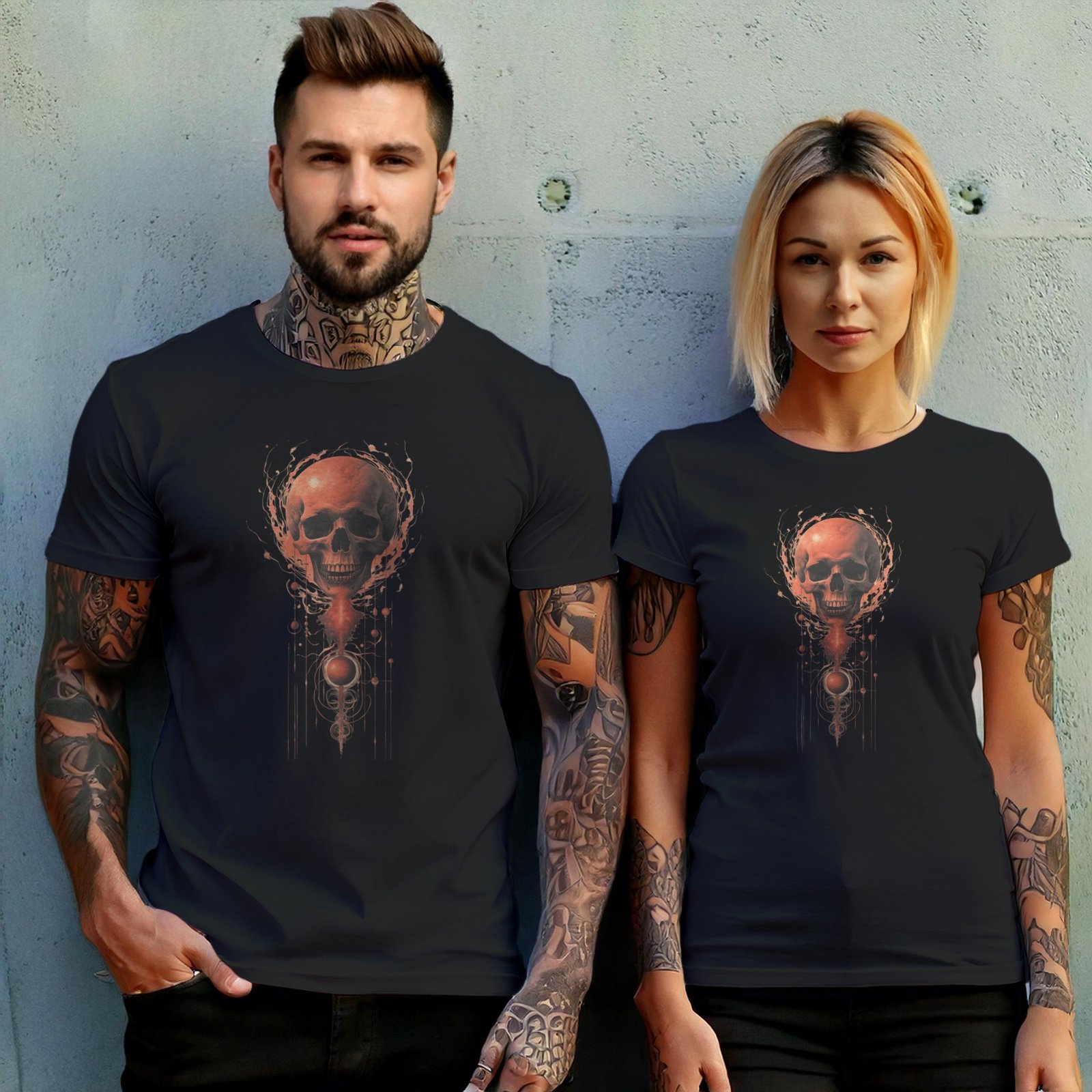 Skeleton celestial sphere dark energy gothic themed artistic t-shirt