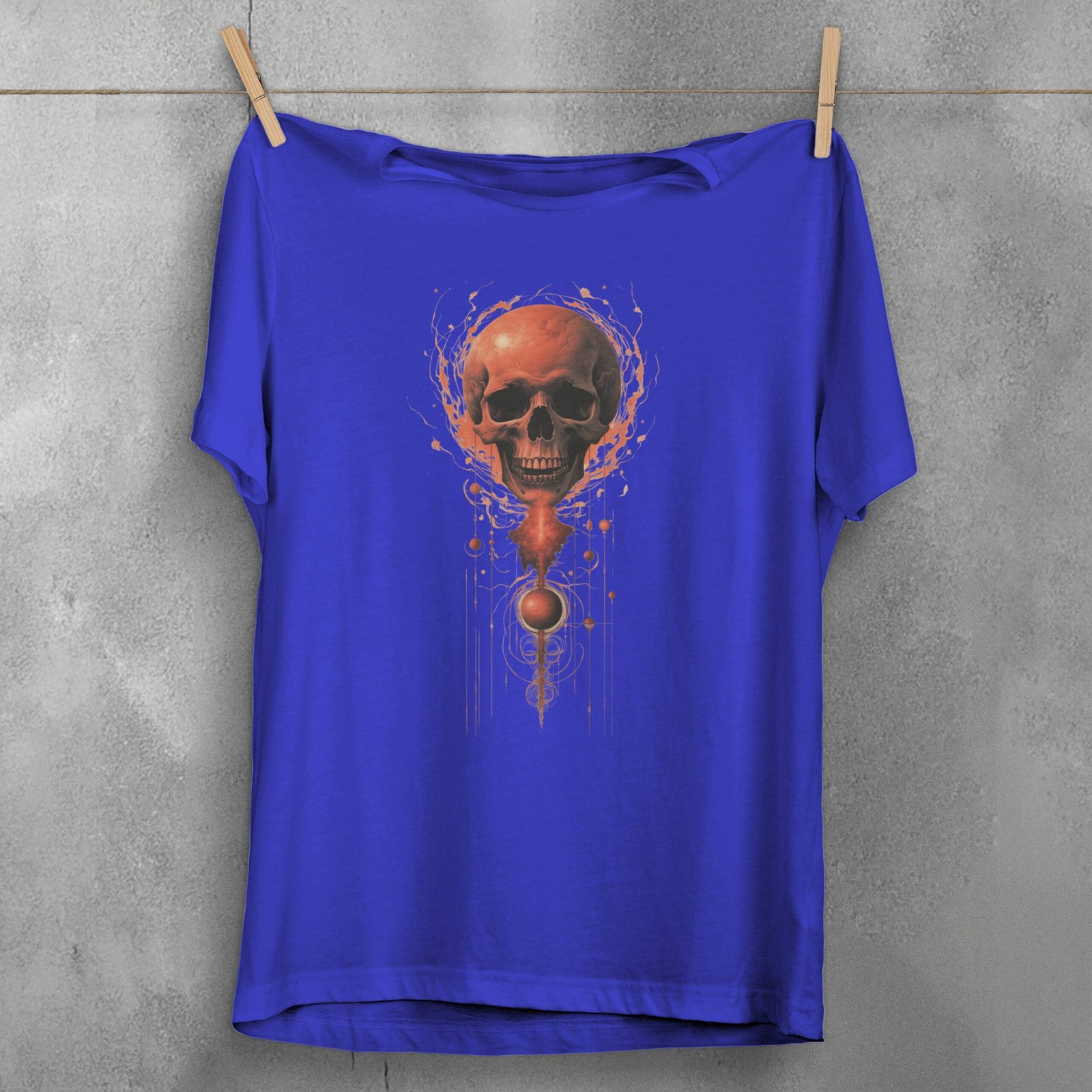 TheOgham presents a gothic vision in rust and crimson. A skull, wreathed in ethereal flames, floats in a cosmic dance. Orbs descend like tears, guided by unseen forces and geometric precision. It embodies a spirit between worlds, balancing earthly and divine. Invoke a sense of timeless mystery, attractive for those who embrace shadows and seek knowledge beyond the veil. Connect with the power of ancient symbols and the poetry of mortality.
