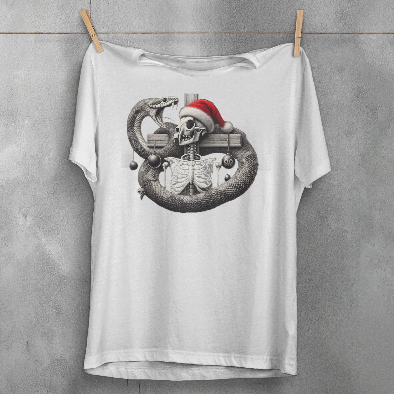 TheOgham presents a gothic expression embracing Christmas. A snake, coiled with primal energy, entwines around a cross. At its center, a skeleton with Santa cap represents the eternal cycle of life and death. Ornaments dangle, adorned with skulls, hint at the darkness beneath the festive season. It reflects an appreciation for both the macabre and the beautiful. It is for those who see beauty in shadows. It is for those who find comfort in the unconventional. It blends gothic aesthetic with holiday spirit.