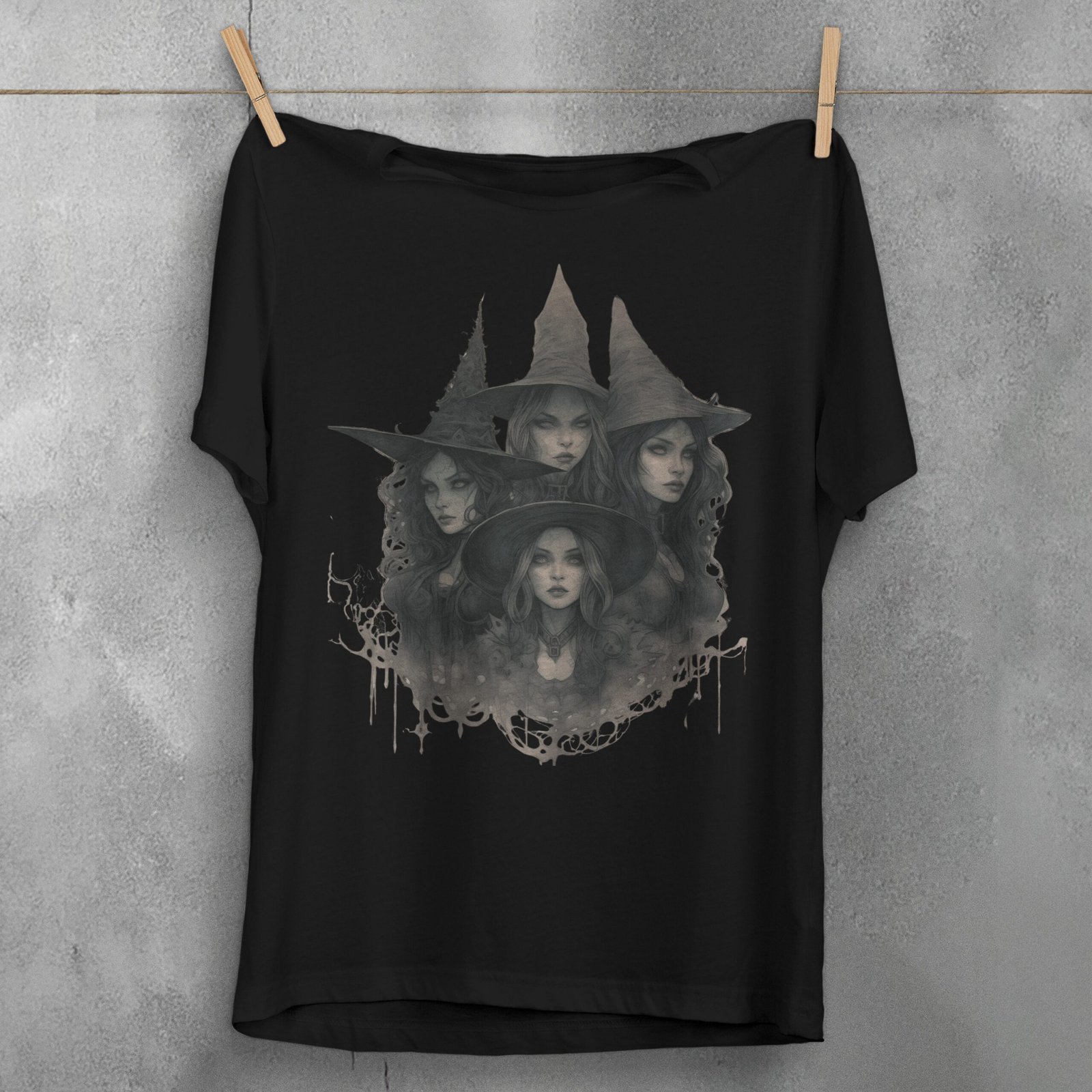 Summon your inner enchantress with this captivating gothic artwork by TheOgham. A quartet of alluring witches, crowned with pointed hats, gaze with knowing eyes. Their ethereal beauty is veiled in shadows, whispering of ancient secrets and hidden power. Dripping textures evoke a sense of mystery and the unknown. This design resonates with those drawn to witchy aesthetics and the allure of the occult. Embrace the darkness and showcase your unique spirit. It celebrates feminine strength and the power of the unseen world.