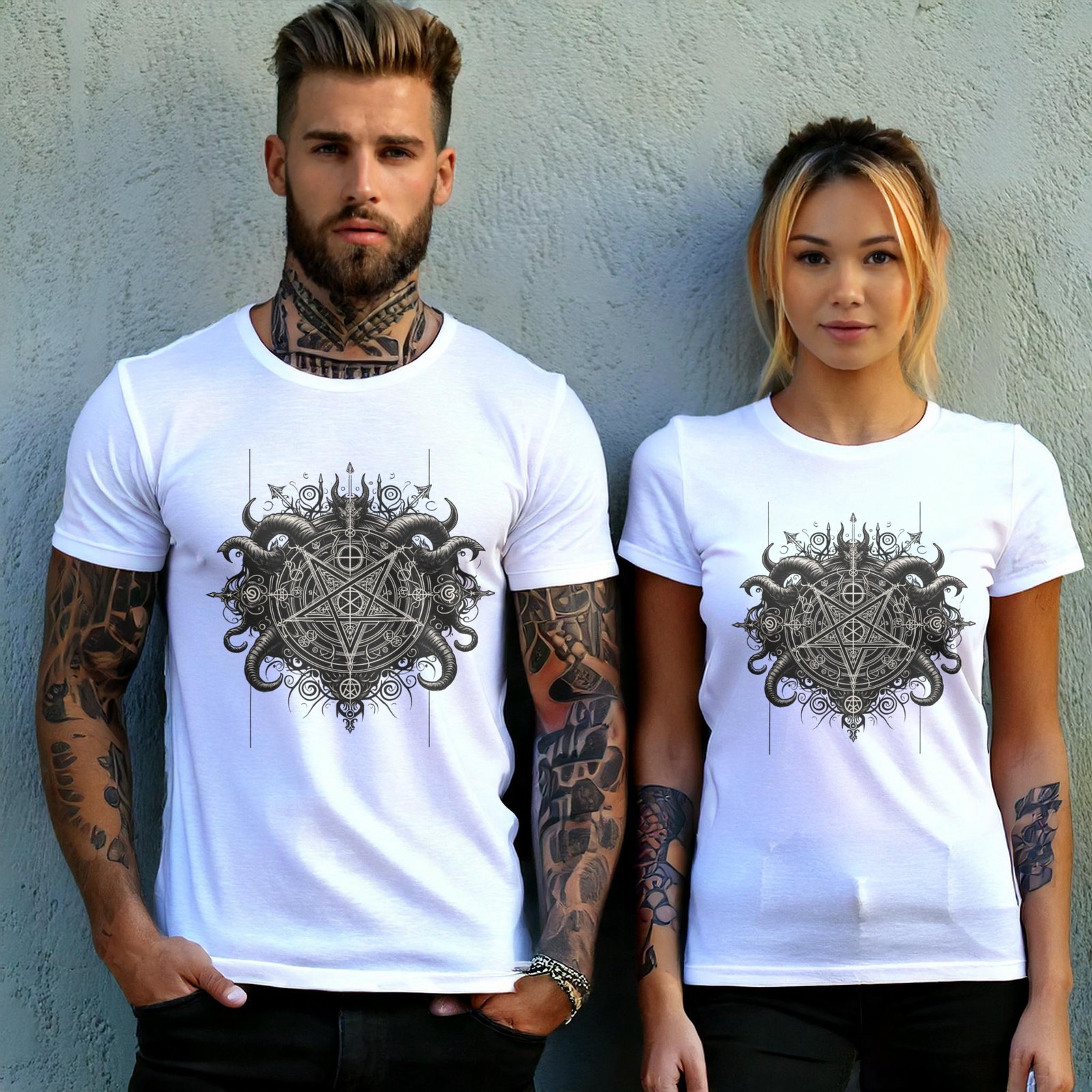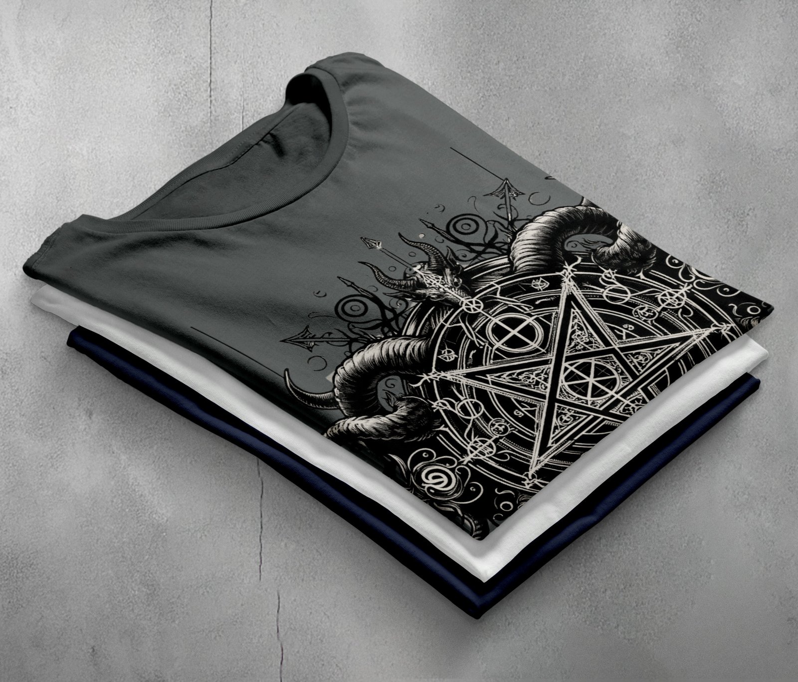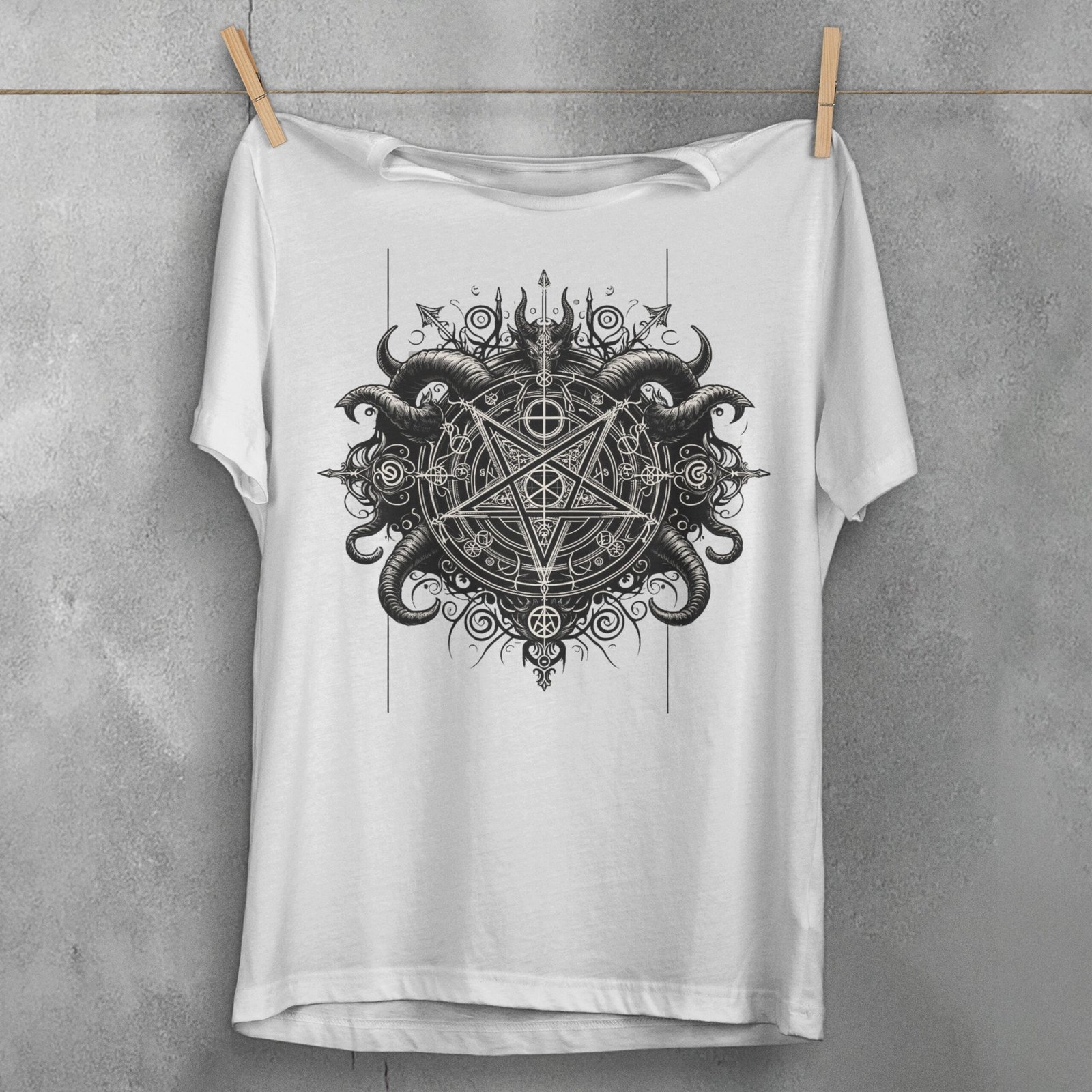 Embrace dark elegance with this gothic pentagram art. Ram horns frame ancient symbols, echoing witchcraft and arcane mystery. For souls drawn to shadow. An expression of occult knowledge and strength. Feel the power, show your witchy spirit. Connect with primal energies through intricate artistry. Perfect for those who find beauty in the darkness and witchy vibes.