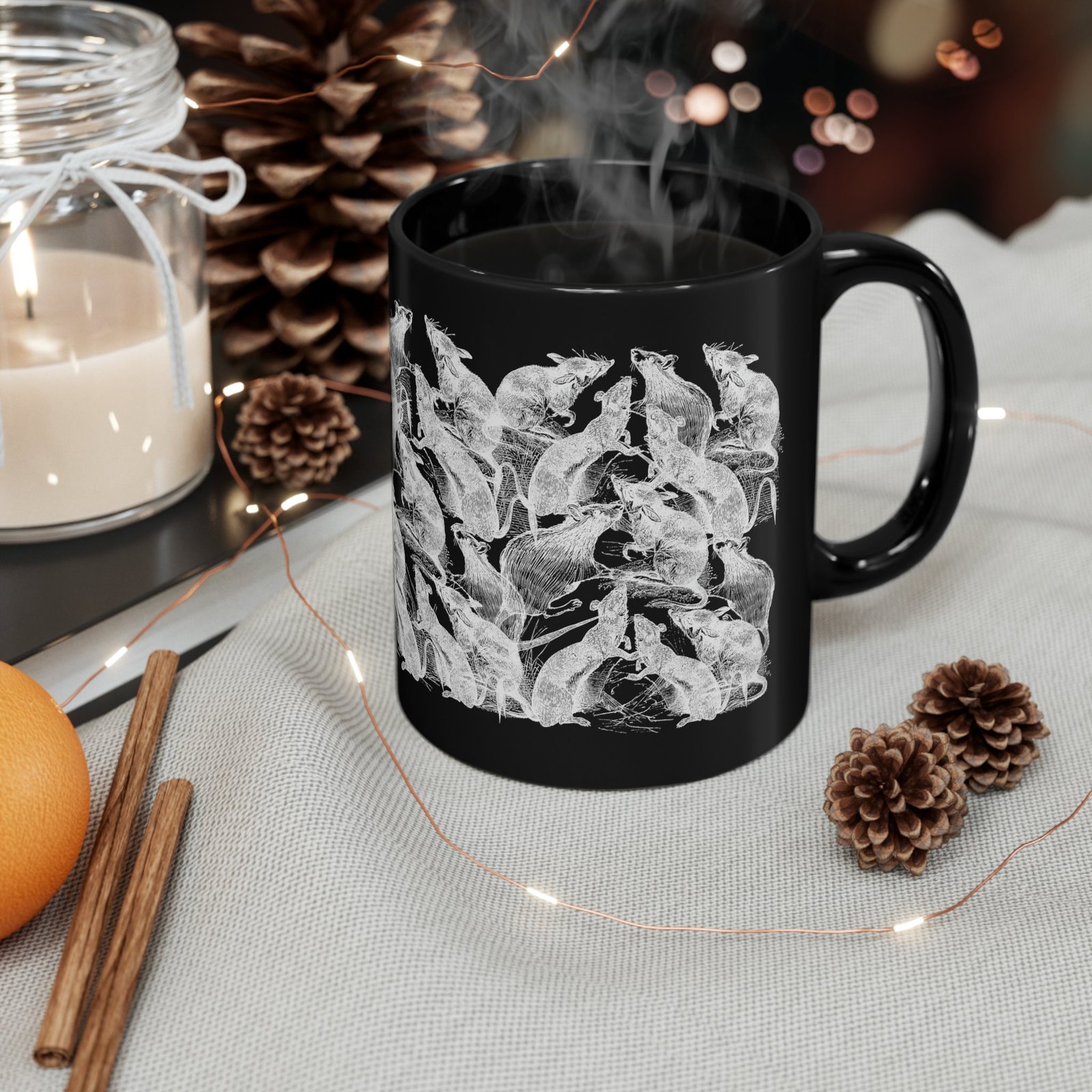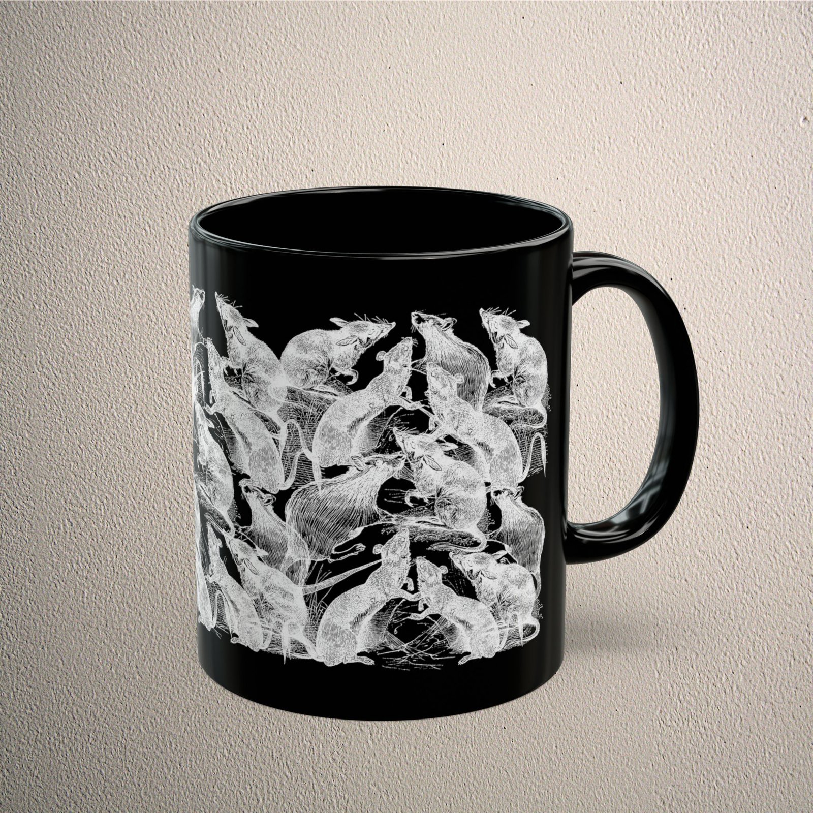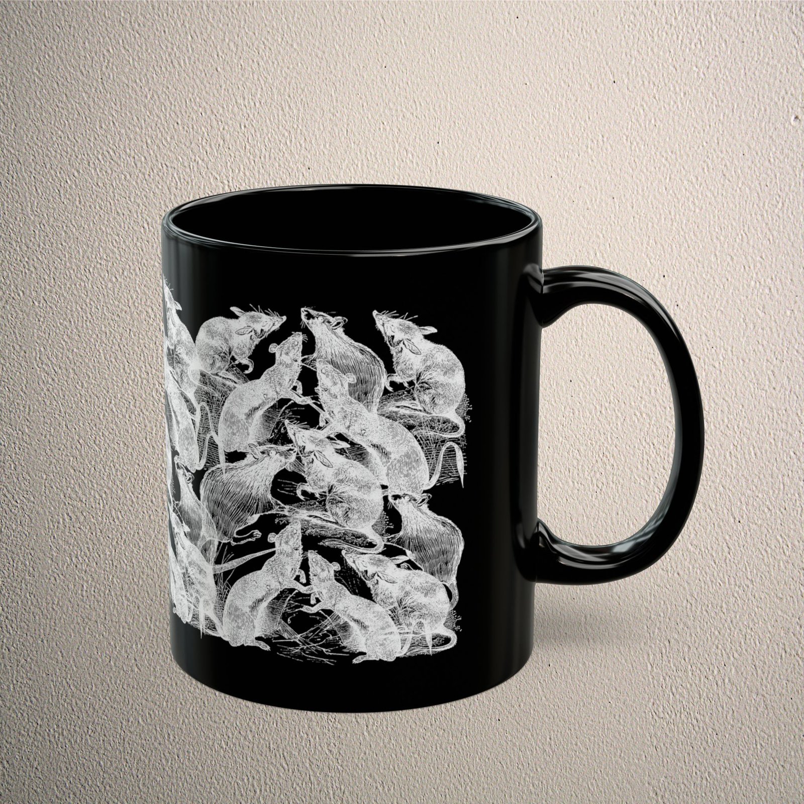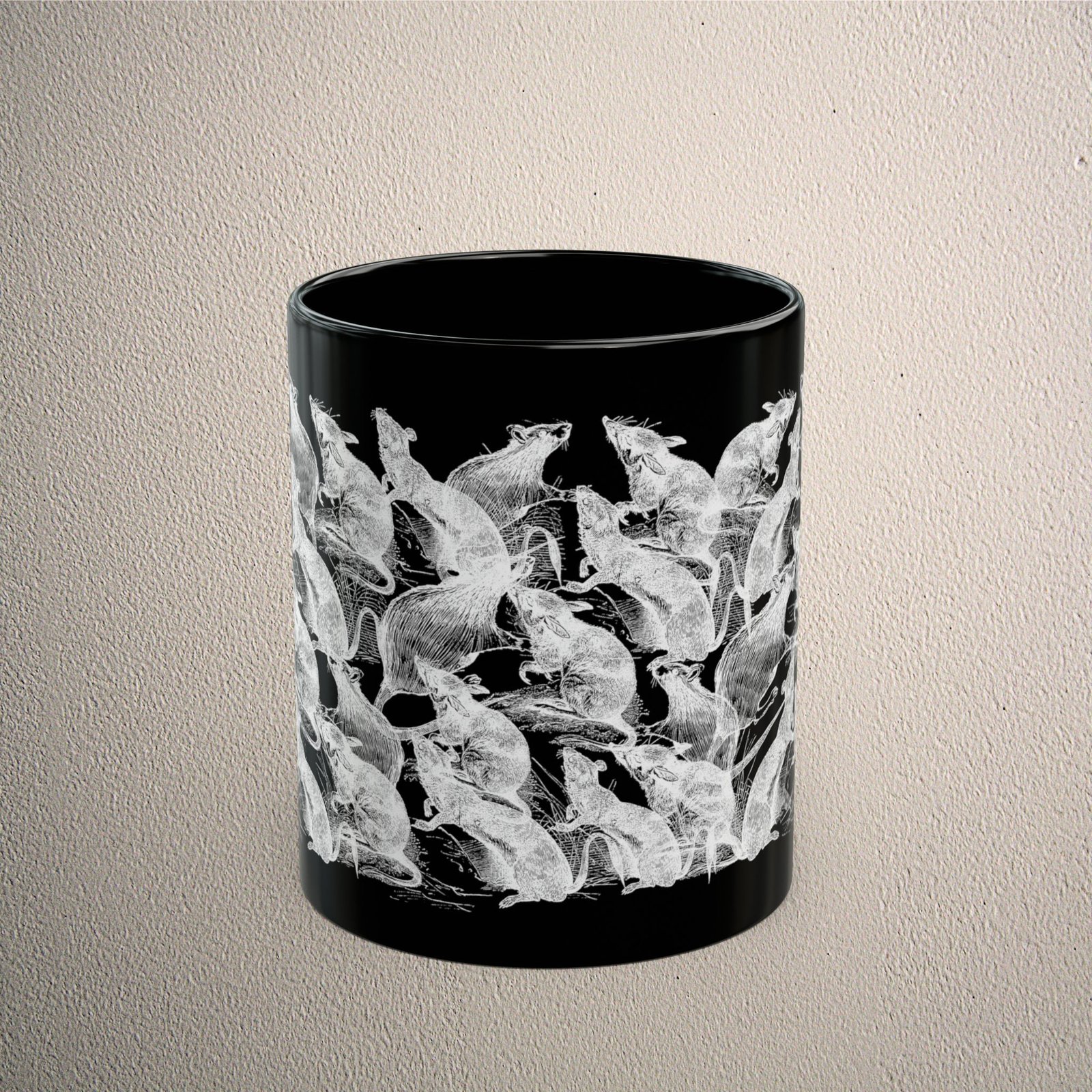 Summon the charm of the witching hour with this striking artwork. An elegant gathering of rats etched in spectral white against midnight black, their wild energy dances across the surface. Their tiny eyes sparkling with secrets. The delicate linework captures the essence of gothic allure. This artistry speaks to those drawn to the hidden, the unconventional, and the beautifully macabre. A piece by TheOgham for connoisseurs of esoteric style.