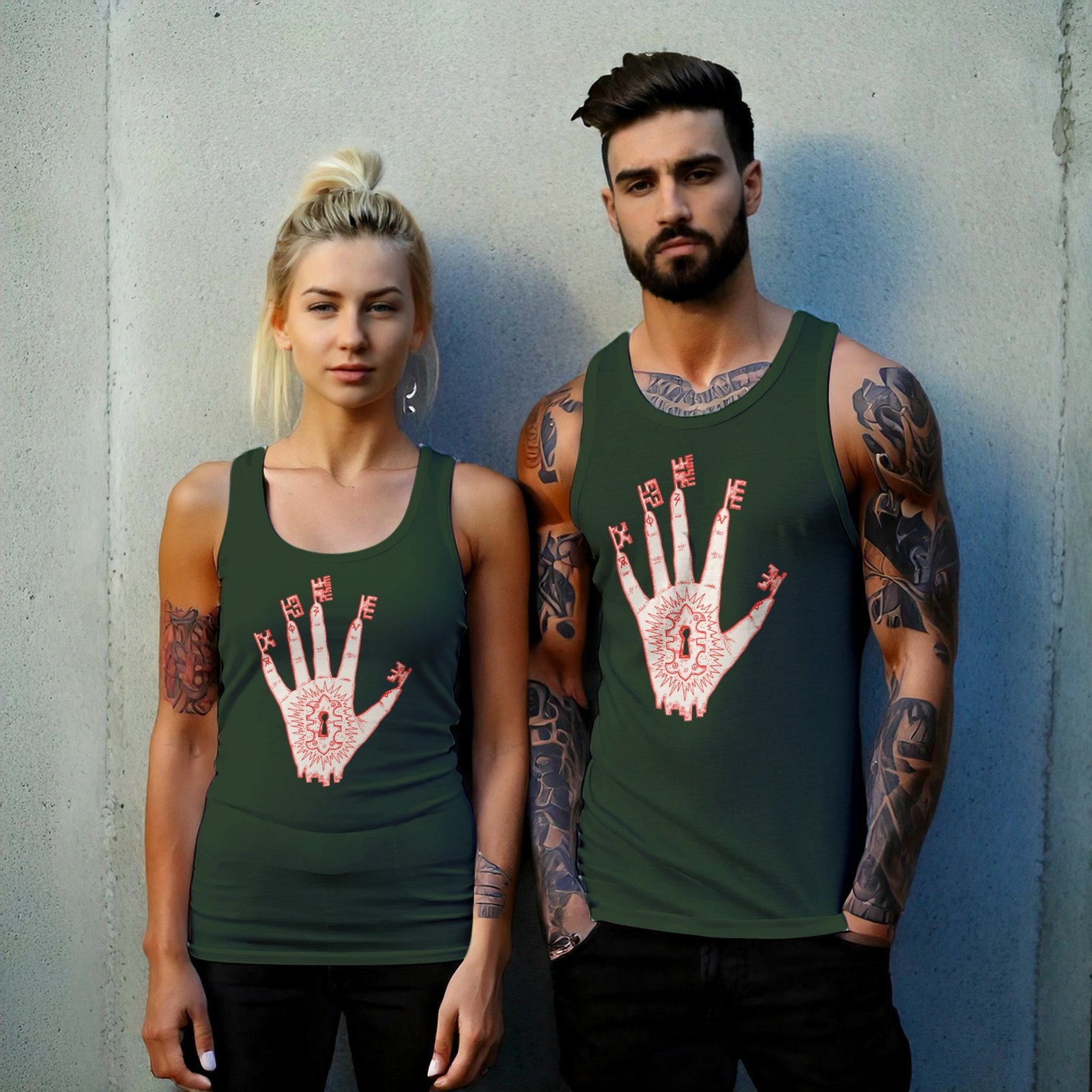 Witch hand holds ancient mysteries unlock destiny sacred key tank top